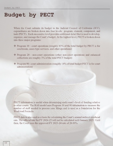 organize, and manage the Court’s budget. At the highest level, PECT is broken down