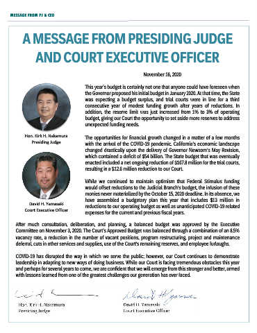 Committee on November 3, 2020. The Court’s Approved Budget was balanced through a combination of an 8.5%